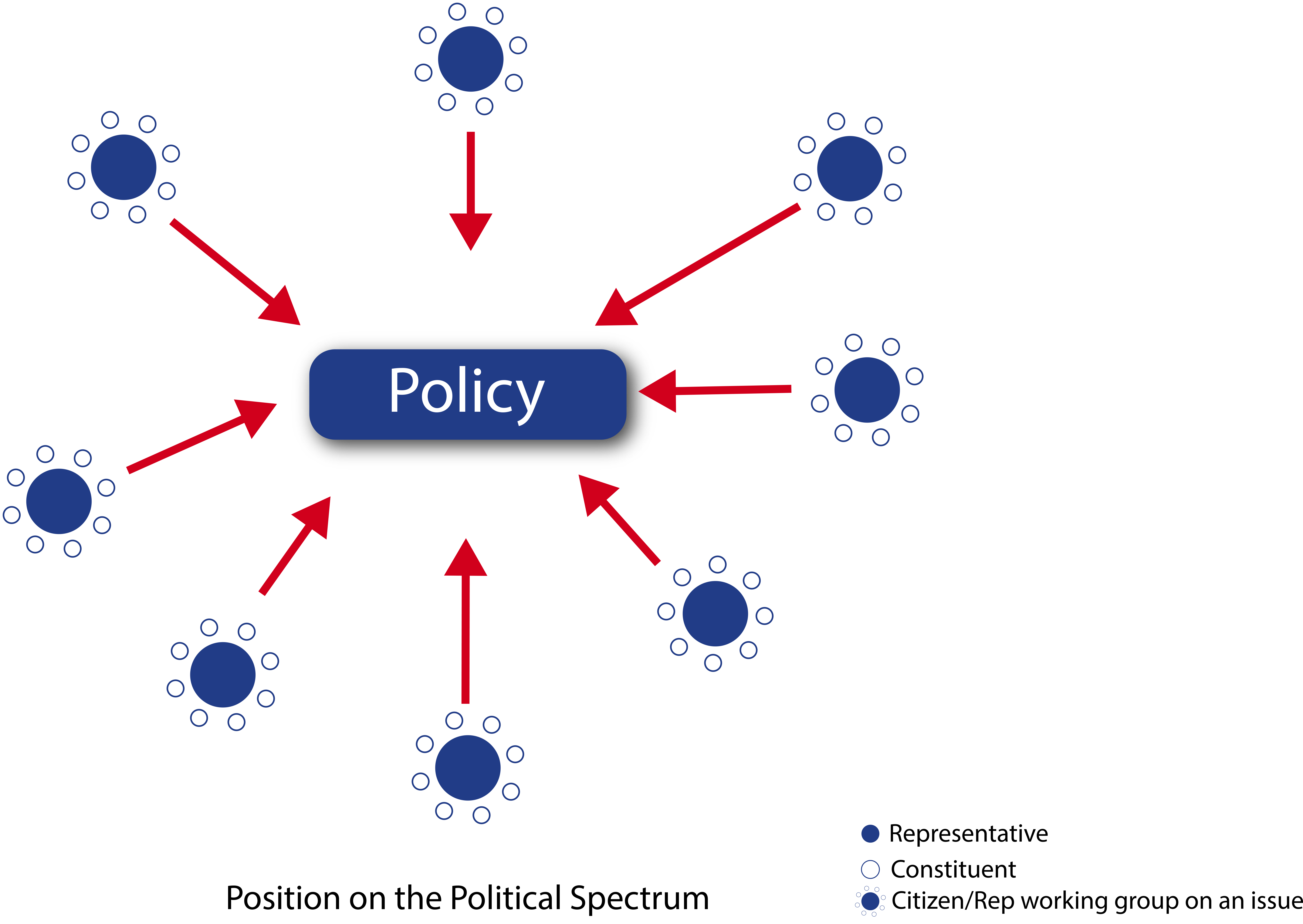 The way we envision making policy is more like a fertile landscape or garden, with citizens as the roots supporting the formation. The policies are relayed to the Representatives from the People themselves. Representatives come together in a spirit of mutual dignity and respect, looking to reach a solution based on the constituents’ needs driven by trust, compromise, and a genuine desire to deliver results.